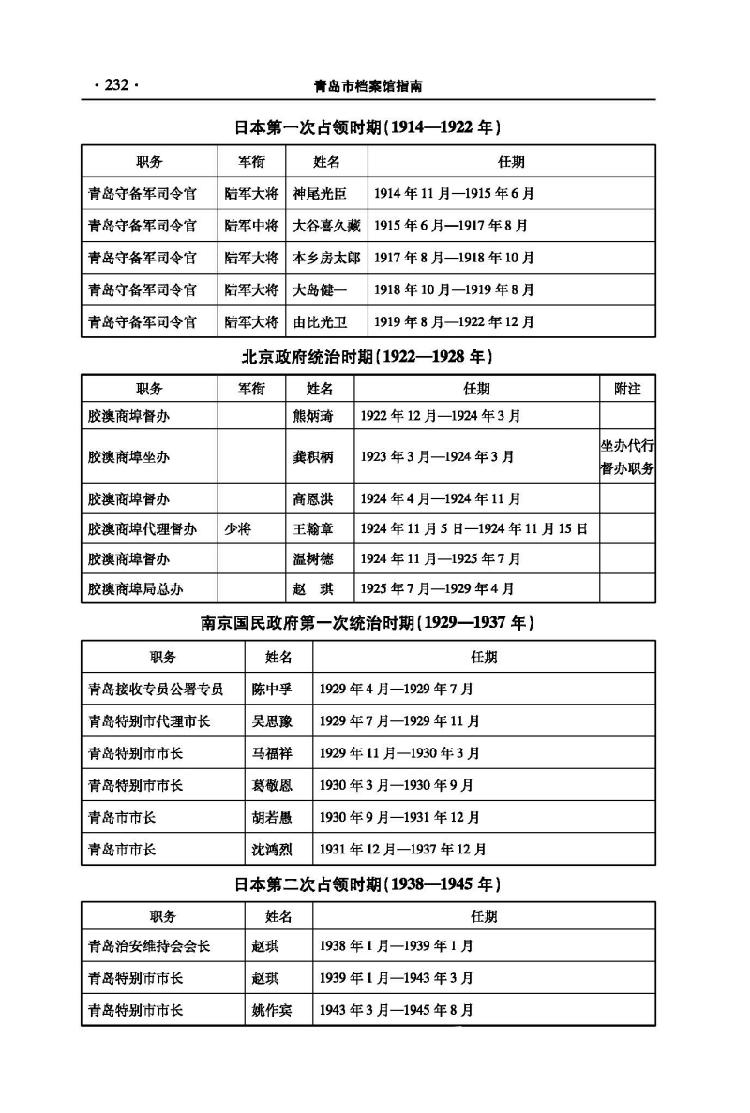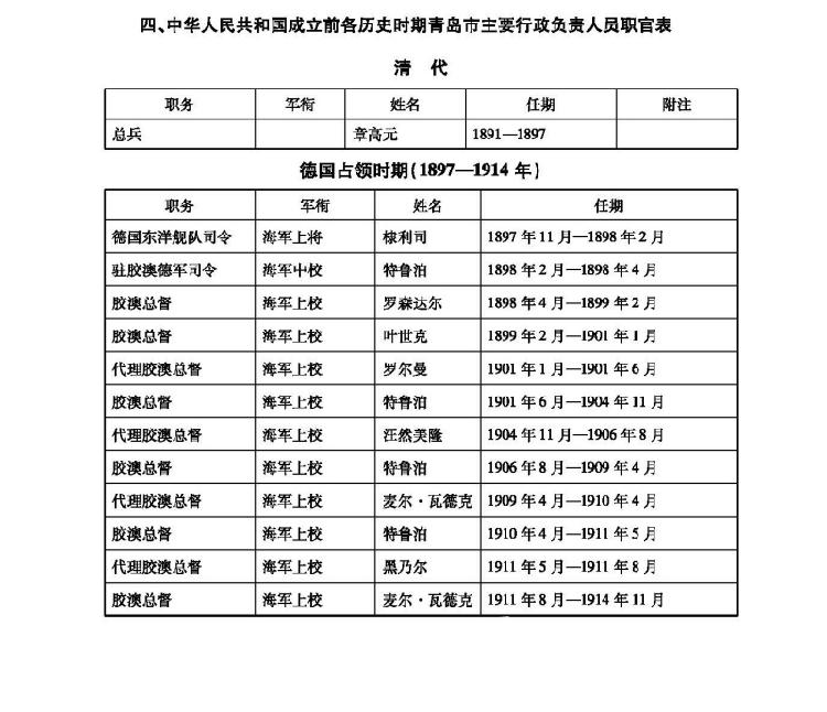 中华人民共和国成立前各历史时期青岛市主要行政负责人员职官表