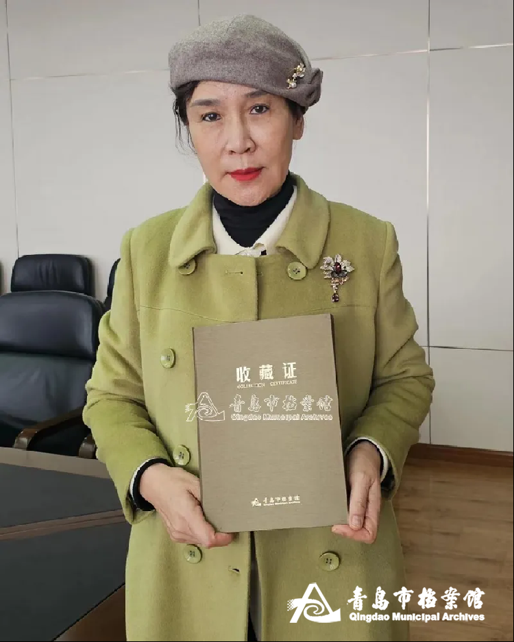 工作人员向王女士表示由衷的感谢并颁发了收藏证书。青岛市档案馆将聚焦用好用活馆藏红色文化资源,做好档案宣传,讲好党的故事,充分发挥爱国主义教育、国防教育基地功能,弘扬红色精神、传承红色基因,为广大党员干部及中小学生更好地开展红色教育打造精神家园。
