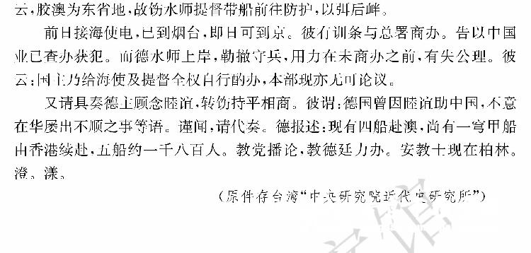 • 作者:青岛市档案馆     文章来源:胶州湾事件档案史料汇编下册      形成日期:1897年11月18日