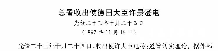 总署收出使德国大臣许景澄电(光绪二十三年十月二十四日 1897年11月18日)