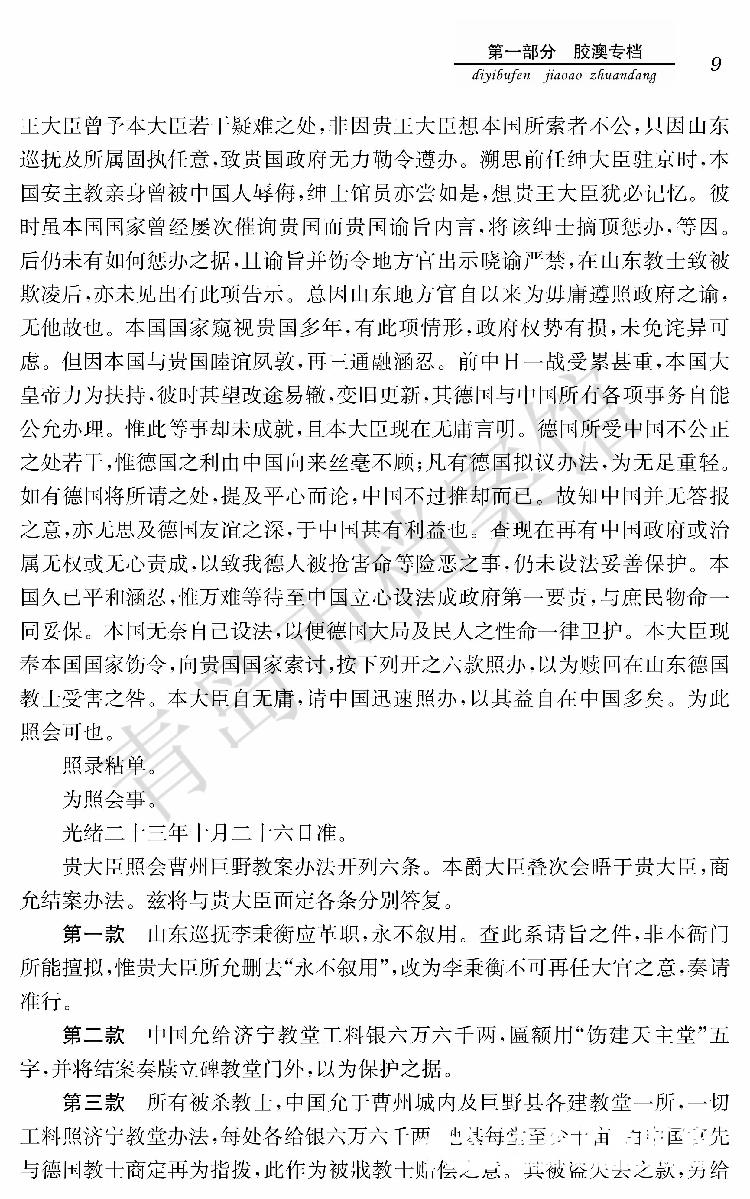 • 作者:青岛市档案馆     文章来源:胶州湾事件档案史料汇编下册      形成日期:1897年11月20日