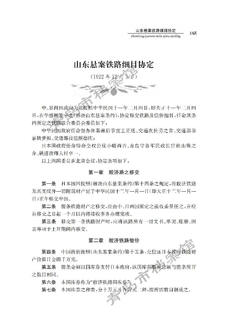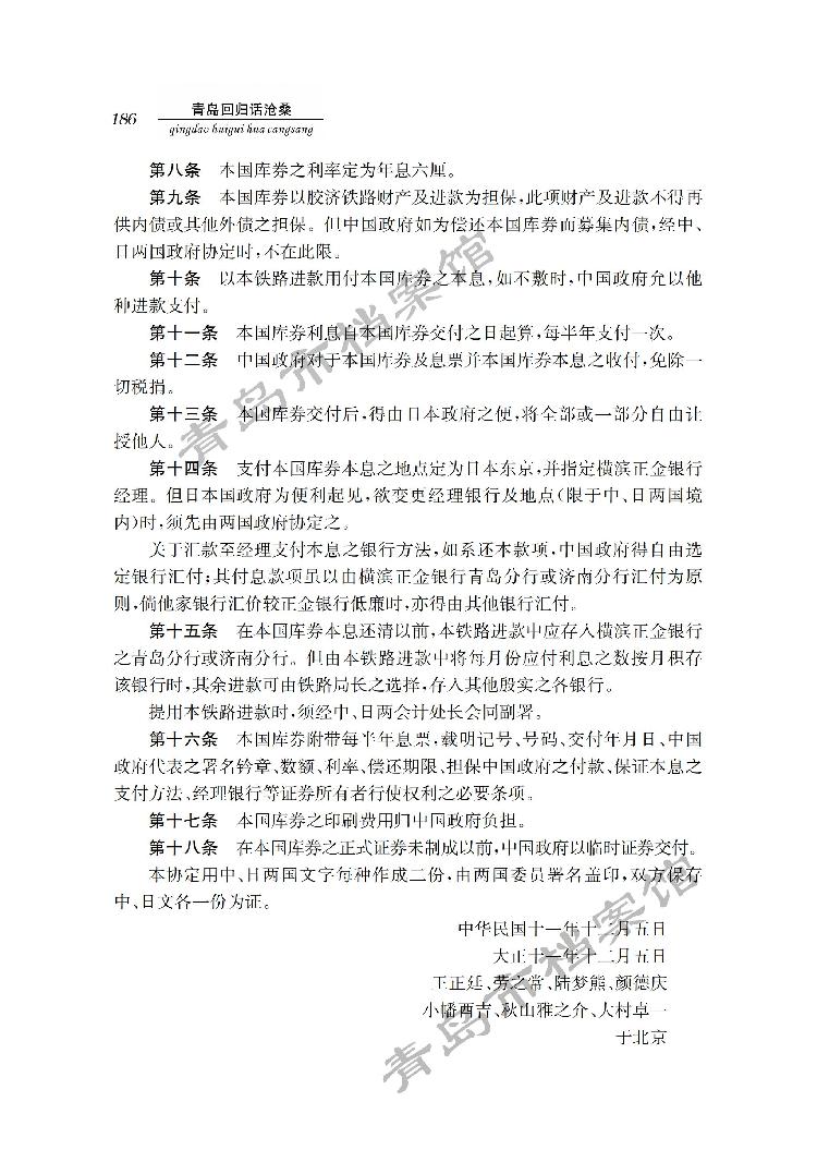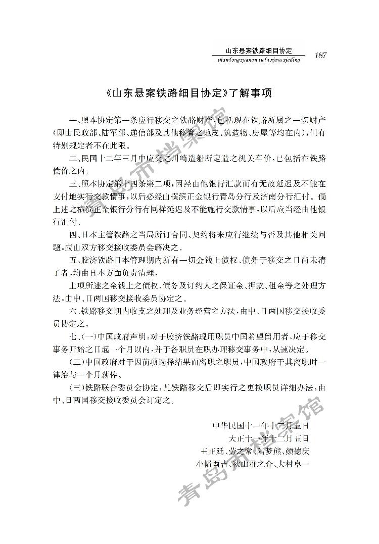 • 作者:青岛市档案馆     文章来源:《青岛回归话沧桑》附录      形成日期:1922年12月5日