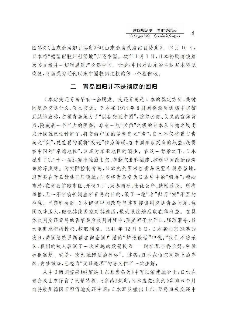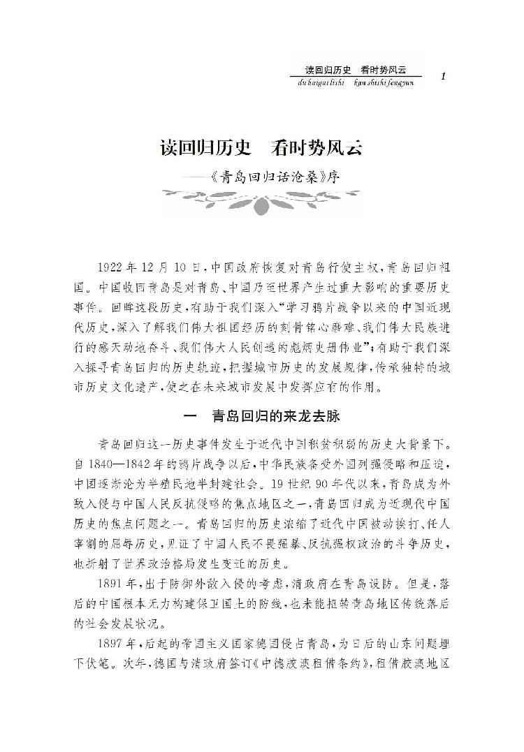 读回归历史 看时事风云——《青岛回归话沧桑》序