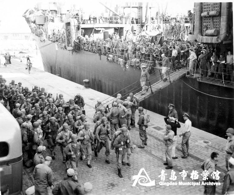美国海军陆战队第六师登陆青岛 青岛市档案馆馆藏